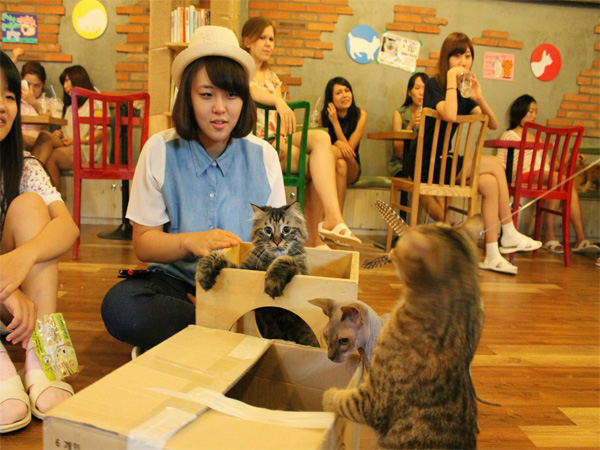 Какая милота *Q* Прелестное кафе с кошечками ^^ Интересно, сколько же будет стоит посещение за час :з