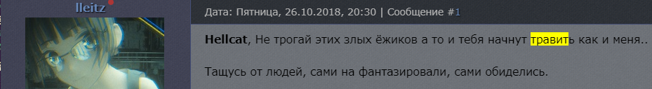 Hellcat, эм... Ну... Да, не имеешь права отвечать, потому что я [тоталитарная система ака Анибокс] так сказала хддд Шучу, конечно. Негатив не запрещён, а вот конфликты - это не очень хорошо, всё же если между вами случается межличностное столкновение, то лучше реально не доводить до такого)