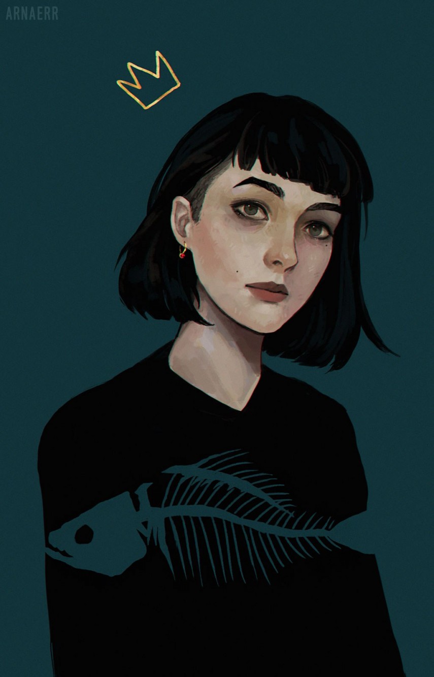 Здравствуйте. Мне, пожалуйста, арт с синеволосой девушкой в очках.