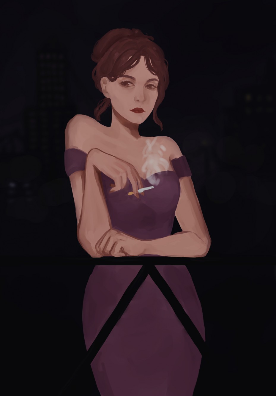 Acedia, ты ещё и рисуешь *0* Я не скажу ничего нового, это просто великолепно! У тебя чудный стиль. Для меня он кажется грустным, немного мрачным. Это прозвучит странно, но она похожа на девушку лёгкого поведения (имею ввиду древнюю "профессию"), которая не может разобраться в себе, вышла на балкон покурить. Элегантная, желанная и такая доступная.