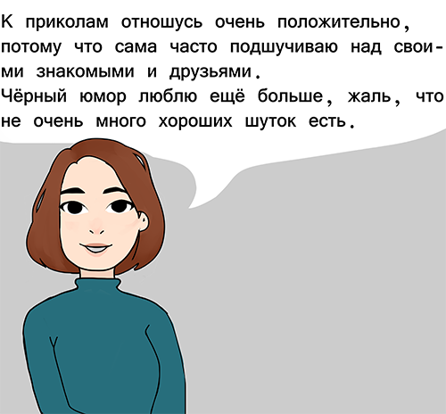 2. Человек 3. 16 4. 170 5. 60 6. 7. + Артистичная + Свободолюбивая + Смелая + Активная - Вспыльчивая - Высокомерная - Эгоистичная - Хитрая 8. Ради интереса |