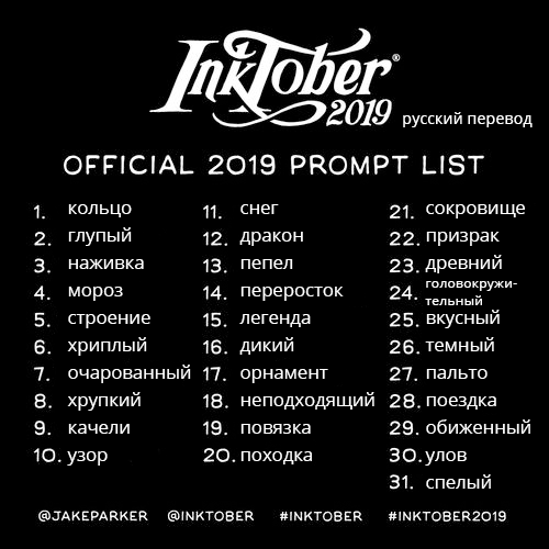 #Инктобер2019 Здравствуйте, друзья! Уже завтра настанет октябрь и вместе с ним наступит ежегодный Инктобер 2019, а это отличная причина для каждого художника выйти из зоны комфорта и порисовать всласть. Что такое инктобер? InkTober (от англ. "ink" - чернила) - это ежегодный-месячный флэшмоб для художников, запущенный Джейком Паркером (тоже художником), для тренировки и развития навыков рисования, и более лучшего восприятия цветовой палитры. Джейк Паркер запустил этот челлендж, чтобы проверить собственные силы (в 2009), но неожиданно инктобер набрал популярность и стал проводиться ежегодно. Правила классического инктобера: Художникам даётся 31 слово на каждый день октября, рисунки должны быть в чёрно-белом цвете. Приветствуются такие материалы как: чёрная тушь и лайнеры. Рисовать необходимо на бумаге, в "традишке". У художника есть только его фантазия, с помощью которой он должен изобразить "загаданное" слово на бумаге. Всё осложняется отсутствием цветов, что для многих художников может стать настоящим испытанием их сил. Отступление от правил: За десяток лет, что существует Инктобер, появилось множество похожих флэшмобов (например, WitchTober, когда каждый день рисуют ведьм), а рамки дозволенности расширились. Художники могут рисовать в "диджитале" и использовать любые доступные материалы. Даже соблюдение чёрно-белой расцветки не обязательно: вы можете рисовать каждый день в красном, в синем и любом другом цвете. Слова: Флэшмоб зародился не в России, а иностранный язык богат на значения. Слова, по мотивам которых художники будут делать рисунки, я выложу как в оригинале, так и в переводе. Если вы зашли в тупик, то всегда можете посмотреть другие значения любого слова, чтобы лучше понять для себя идею и проработать детали рисунка. Это официальный список слов для ИнкТобера 2019 :) ![]() ![]() Заключение: Будет здорово, если и художники Анибокса поучаствуют в этом флэшмобе. Если вдруг кто-то решится устроить себе подобное испытание, всенепременно делитесь своими успехами как здесь, так и в соц.сетях. Для пользователей Instagram, по тегам #inktober или #inktober2019, в какой-то мере будет полезно и интересно посмотреть за работами других художников) Наверное, не только инстаграм будет пестрить рисунками, но и другие соц. сети... кому интересно - участвуйте и наблюдайте, развивайте свои талантливые лапки *о* Я ничего не понял: Официальный сайт "Инктобера" Познавательное видео |