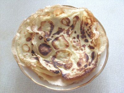 Очень тонкие блины на воде. Состав: 3 яйца 1,5 стакана муки 2,5 стакана воды 3 столовые ложки сахара (для любителей послаже - 4 ст.л.) на кончик столовой ложки соли 3 столовые ложки растительного рафинированного масла Приготовление: хорошо смешать яйца, сахар, соль добавить подсолнечное масло - смешать долить 0,5 стакана воды - смешать постепенно всыпать всю муку и хорошо смешать доливать постепенно воду по 0,5 стакана и хорошо размешивать, чтобы не было комков Далее немного советов. Мясо для блинов. То, что получается. |