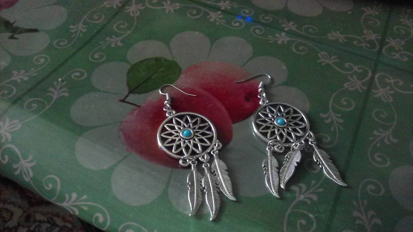 Такс вот наконец пришли мои прелести с Китая, и я решила похвастаться. Как я их только увидела, просто сразу нажала кнопочку "заказать" Когда-то в магазине увидела ее, не смогла пройти,теперь это моя сокровищница. Как то я помешалась на ловце снов. Листики, такая прелесть И моя любимая сережка, одtвается на 2 дырки, у меня хрящ проколот на левом ухе вверху,как раз самое оно^^ |