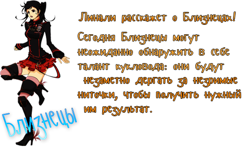 Начиная с 25 ноября 2016 года гороскоп будет выходить через день. Так же у нас открыт набор, если ты хочешь, чтобы гороскоп был каждый день, то напиши генеральному директору. Располагайся поудобнее, ведь я надеюсь, что ты готов вершить свою судьбу! :) ![]() ![]() ![]() ![]() Упс, в меня вторглись - Кирпичик - Пятница, 25.11.2016, 02:53 |