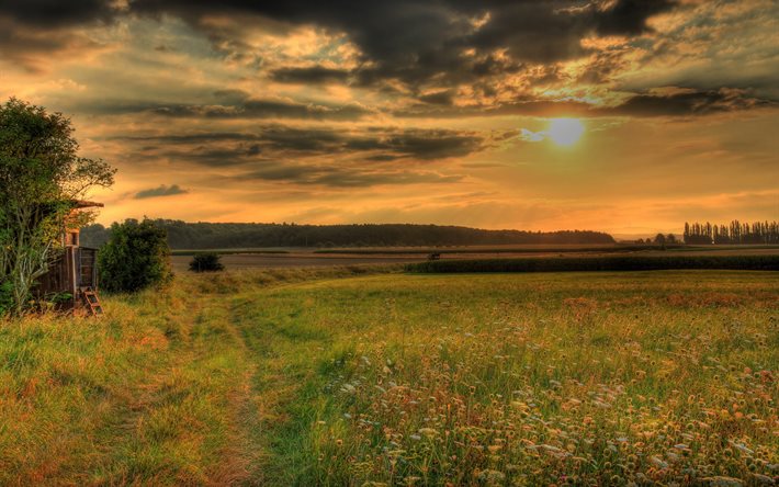 В деревне, где жили бабушка и дедушка... там висячий мостик и лесополоса, а перед этим мостом поля диких цветов...а ещё там дикие сады с грушами, яблоками и вишнями.