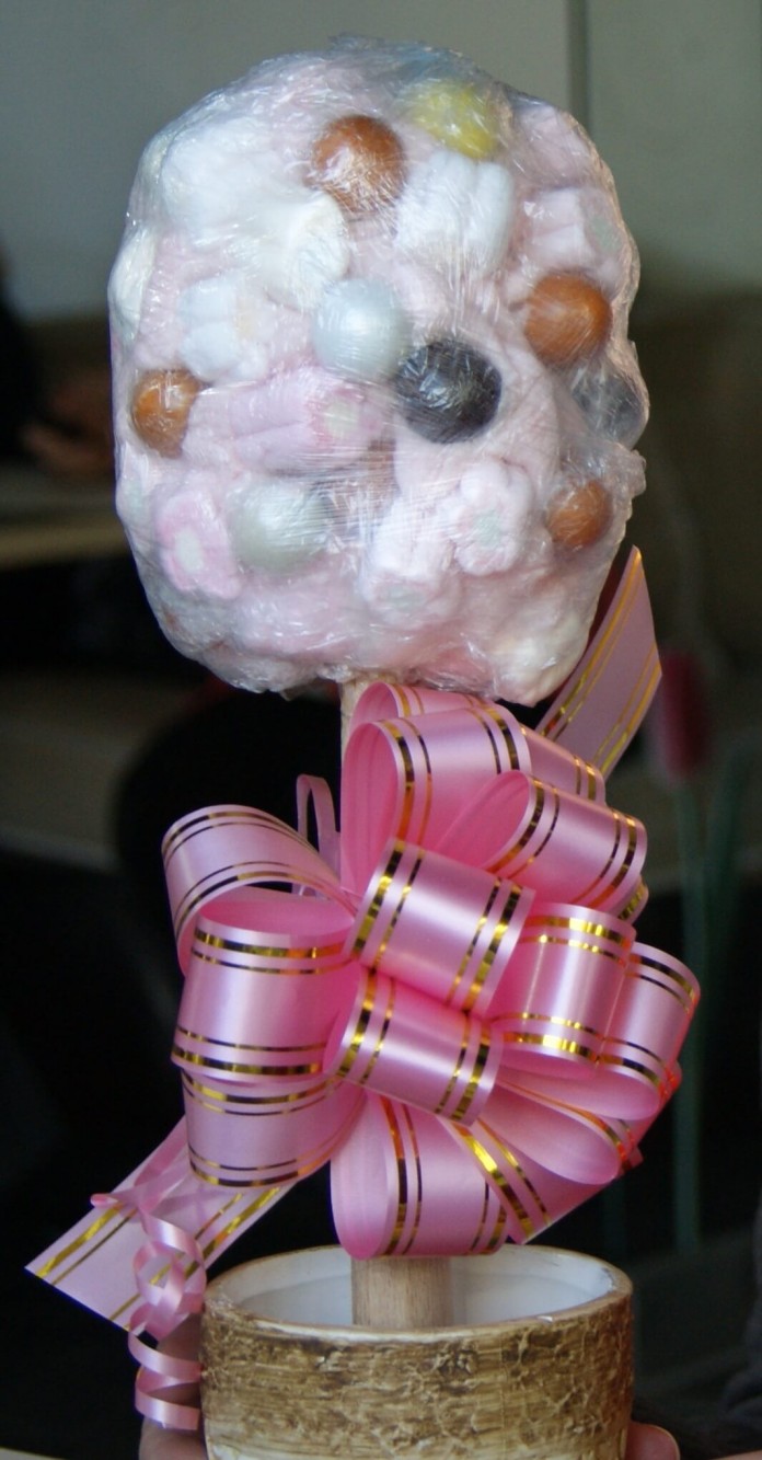 Торт из сладостей для подруги. Дарили в мае, который был аномально жарким...думали, не выдержит он >< Топиарий /вроде так, хотя мы хотели сделать большой чупа-чупс :о/ для другой подружки. С ним было больше мороки, но вроде как подруга оценила. А это денежный торт. Внутри денежки. Я обычно прячу много мелких купюр, 50 или 100р. Подарок на свадьбу. Рядом корзинка со сладостями, к каждой из которой был стишок в открытке, а-ля: Пусть любви будет через край - Дарю я вам чоко-пай) |