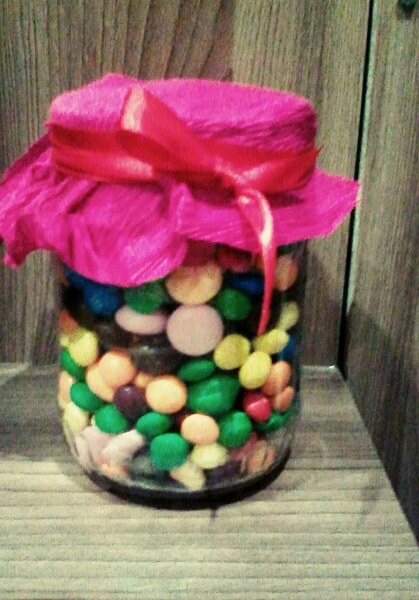 А так, как пожеланий для подарка у молодых не было, решено было дарить денюшку. Но не в конверте же...и так, благодаря конфетам и идеям из сети появилась Сбербанка на яркую и сладкую жизнь :D На этикетке(на фото нет её, правда) подписано для кого и когда изготовлено - имена молодых и дата свадьбы). Внутри упрятаны деньги :D Мне понравилась эта идея, возьму на вооружение, как и торт. |