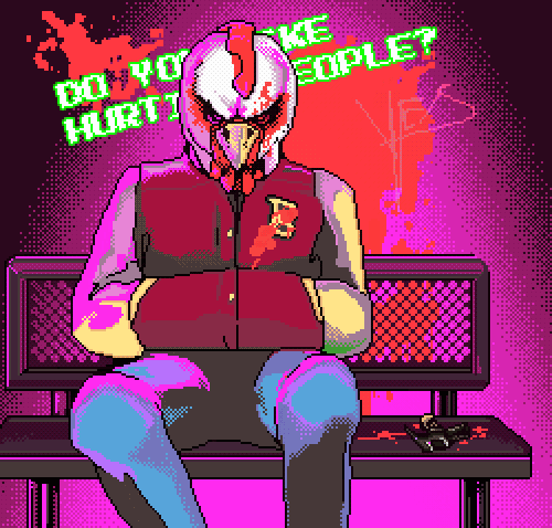 ![]() Hotline Miami — компьютерная инди-игра в жанре 2D Top-Down action, которую разработали Джонатан «Cactus» Сёдерстрём и Деннис Уэдин, ранее работавшие вместе над игрой Keyboard Drumset Fucking Werewolf. Издателем является Devolver Digital. Выпущена 23 октября 2012 года для Windows посредством сервиса Steam. Особенностями игры являются вид сверху, элементы стелса, чрезвычайная жестокость, а также сюрреалистичный сюжет и стильный саундтрек. При работе над исполнением игры разработчики вдохновлялись культурой восьмидесятых годов. Также большим источником вдохновения служил фильм «Драйв» — имя Николаса Виндинга Рефна упомянуто в отдельной графе в титрах. 10 марта 2015 года вышло продолжение игры под названием Hotline Miami 2: Wrong Number, который завершает все сюжетные линии оригинала. Игровой процесс. Hotline Miami разделена на несколько глав, каждая из которых поделена на этапы. В начале каждой главы главный герой просыпается в своей квартире и прослушивает зашифрованные послания, присылаемые ему на автоответчик. В каждом сообщении протагониста просят проделать определённую, кажущуюся рутинной работу в указанном месте. Сообщения являются метафорой для реального задания — убить всех по упомянутому в сообщении адресу. Перед началом миссии герою предлагается надеть одну из множества звериных масок — каждая из них даёт игроку определённые особенности, облегчая или усложняя игровой процесс. На каждом этапе игроку даётся цель — почти всегда она сводится к тому, чтобы убить всех противников. Иногда в конце этапа игроку предстоит сражение с боссом или поиск необходимых для продолжения предметов. Игрок имеет доступ к широкому арсеналу холодного, метательного и огнестрельного оружия, каждое из которых в разной степени подходит для различных стилей прохождения. При этом главный герой, как и его враги, умирает с одного удара, и любая, даже незначительная ошибка способна привести к поражению. Для облегчения игры разработчики предусмотрели возможность сразу же начать миссию с ближайшей точки сохранения, нажав на R, что позволяет путём проб и ошибок выявить наилучшую последовательность действий. В конце миссии ведётся подсчёт очков на основе того, каким образом игрок проходил миссию — в зависимости от конечного счёта игроку может открываться новое оружие. Также в игре сложный сюжет который очень трудно понять. В игре есть разные герои, у каждого из которых своя история, но всех их что-то объединяет... Персонажи. Джакет ![]() Джакет - это протагонист Hotline Miami и играбельный персонаж на протяжении основной части игры. Получает странные сообщения на автоответчик в которых сообщается адрес и какая-нибудь повседневная рутина, хотя за этим скрывается нечто большее. В своих снах Джакет встречается с тремя персонажами : Ричард, Расмус и Дон Джуан. Любит видеоигры, это можно объяснить наличием NES в спальне. Страдает от психических расстройств, что и вызывает галлюцинации, скорее всего вызванных пост-травматическим синдромом, контузией и/или смертью Бороды в 1986. Он читает новости, а также вырезает из них все заголовки и статьи про его "работу". Он ест много пиццы и вредной еды. Его автомобиль похож на DMC-12 и Lotus Espirit. Похоже, что он амбидекстр. Он использует различные виды оружия, как и правой рукой, так и левой. Он очень часто не волнуется о людях, волнуется только о тех, кого он уважает. Также, похоже ему тяжело убив