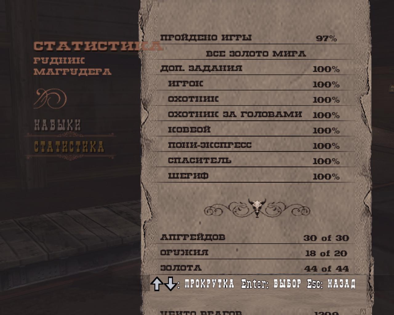 И тут казалось бы, босс не представляет из себя ничего сложного в плане механики, но блин, на максимальной сложности он убивает с ОДНОГО ВЫСТРЕЛА!!! То есть вам нужно сбрить его полоску здоровья(которая даже от выстрела в голову из полностью прокаченного ружья снимает пол миллиметра, то есть нужно потратить примерно половину всех патронов на ружье и это без учёта промахов, которые вы будите делать, так как он любит перекатываться) и при этом выполнить следующие условия: 1. Не поймать не одной пули, так как ваc сразу отправят на чекпойнт. 2. Не угодить под динамит, который он щедро раскидывает по карте целыми пачками по 5 штук и они покрывают большую зону. 3. Не дать ему убить вождя индейцев.(убивает он его как-то рандомно, бывает сам придёт и застрелит, бывает в упор бегает и ему пофиг на вождя, а бывает он его убивает тупо динамитом) Ну и теперь переходим к самому бою. Многие сейчас скажут "Так просто засядь где-нибудь и аккуратно расстреляй его.", но нет, это не работает. Как только вы в него стреляете он бежит к вам и просто под вашими пулями убивает вас. Бегать с ним вокруг камня тоже бесполезно, так как он при малейшей возможности пристрелит вас. В итоге лучшая стратегия, которую я нашёл - это прибегать со спины, делать пару выстрелов и бежать от него по краю арены, чтобы обойти его с другой стороны и сделать ещё пару выстрелов, а затем повторять до победного. Всего за какие-то 3 ЧАСА я завалил этого имбового, нечестного урода и был дико рад этому, только потом я увидел видео где чел просто сломал искусственный интеллект босса, сел под гору у конца арены и просто расстрелял его, пока тот стоял и ничего не делал. После этого я был просто в ярости из-за того что не нашёл это видео раньше, так как босс совсем нечестный. Ну и ещё помимо босса я выполнил все побочные задания в игре(даже покер и охоту), собрал всё золото в игре, а так же купил все улучшения. Теперь осталось только пройти финальную миссию.) Как пройду, так ещё отпишусь.) |