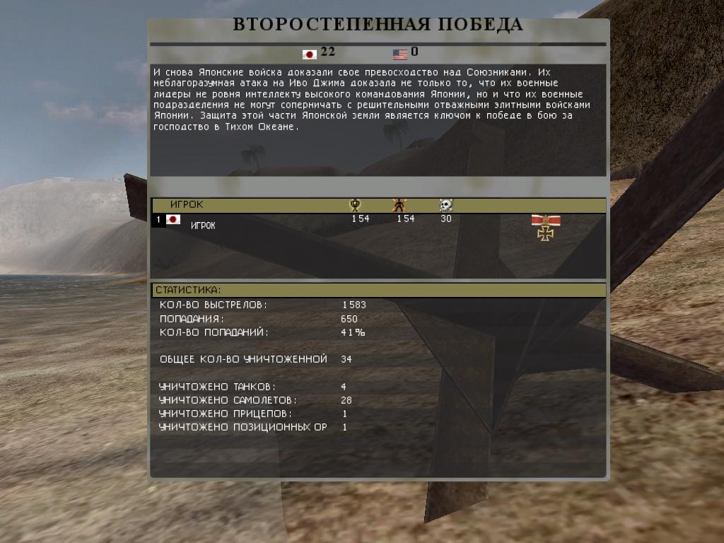 Играл в "Battlefield 1942" на карте "Иво Джима" за японцев. Защитил остров. Потребовалось подбить 28 самолетов противника.