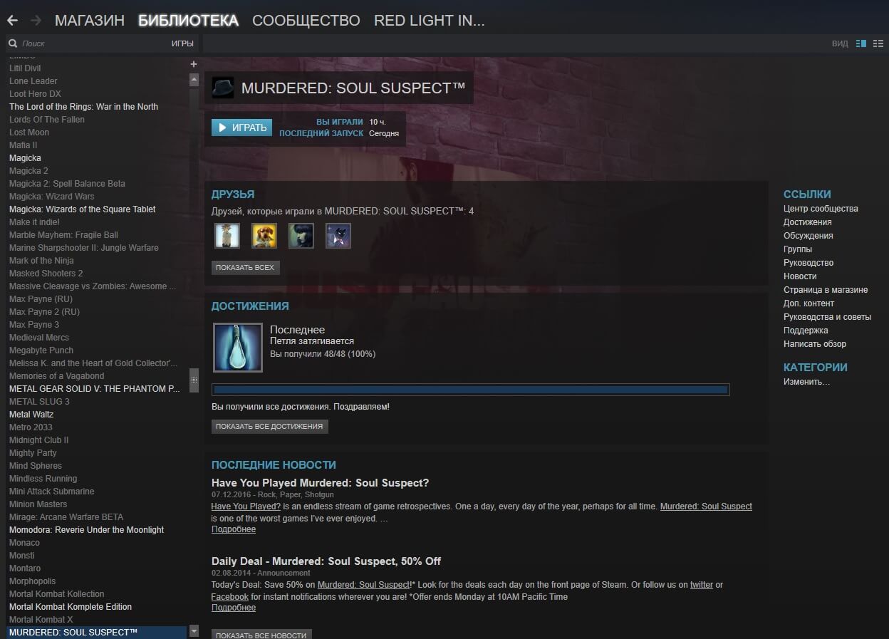 Прошел игру Murdered: Soul Suspect попутно собрав все достижения.)
