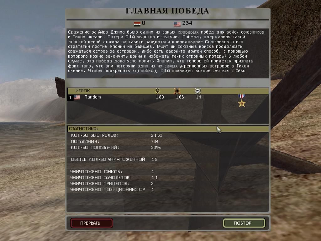 В очередной раз запустил первый уровень третьей кампании "Противостояния IV - Sudden Strike II". Сначала я пустил инженера и прошёл перед фронтом - зачистил местность от фашистов. Потом стрелком с нулевым опытом. Потом стрелком с начальным опытом 319. Затем снайпером. Зачистив перед фронтом, пустил офицера, который разглядел немецкого офицера и двух стрелков, подбил их инженером. Затем всех стрелков посадил в захваченный грузовик, загрузил ящик патронов и отправил их на прорыв линии фронта. Благополучно проскочил мимо Jagpanter'ы противника. После чего повторил то же самое, но в тылу врага. В итоге практически все фашисты были уничтожены, кроме центральной группировки. На это я затратил пол-ящика патронов и 650 минут времени, уничтожив 248 фашистов. Дальнейший план - собрать все трофеи. Начал собирать ящики с боеприпасами. |