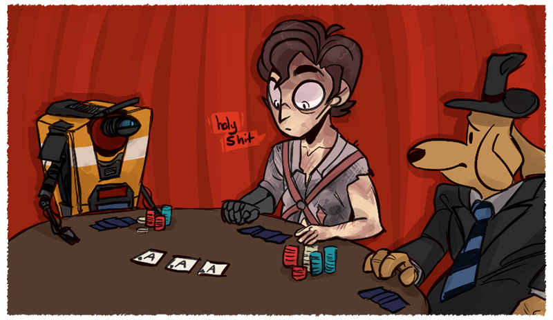 ![]() Poker Night 2 (рус. Ночь Покера 2) – игра-симулятор покера, разработанная и выпущенная компанией Telltale Games. Основные персонажи. Второстепенные персонажи. Немного от себя. Poker Night 2 - это забавный симулятор покера, в котором вы играете против четырех противников управляемых компьютером(да-да, игра одиночная), а в случае победы получаете предметы для Borderlands 2 и Team Fortress 2. Сюжета здесь нет. Это банальный покер, но разговоры персонажей между собой во время игры частенько веселят. Вообщем рекомендую попробовать данную игру тем кто хочет просто и весело провести пару вечеров. ![]() |