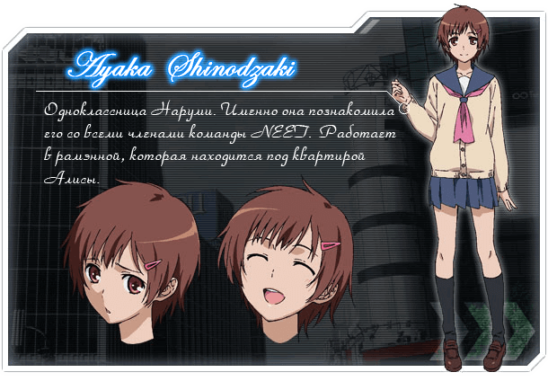 Дальше в жизнь Фудзисимы врывается энергичная и позитивная девушка Аяка Синодзаки. Она одноклассница парня, которая всеми силами пытается растормошить замкнутого Наруми. Аяка заставляет парня присоединиться к клубу садоводства и дабы отметить это, приглашает его в раменную, где работает. Там Аяка знакомит паренька со своими друзьями – теми самыми людьми, которые чуть не обвинили его в недавнем происшествии.